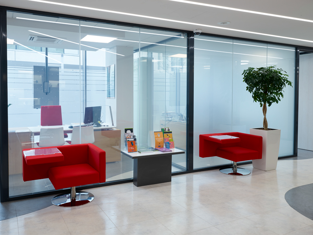 Le projet concerne la création d’une agence bancaire dans une coque brute au rdc d’un immeuble neuf dans la ZAC de Clichy Batignolles (l’un des premiers éco-coquartier de Paris) prévoyant l’aménagement intérieur, ainsi que le traitement de la façade vitrée (mur rideau) sur rues. Cette agence prototype a été l’occasion de mettre en oeuvre, des équipements et matériaux hors charte CIC : cloisons opacifiantes, parement Corian, mur LED. elle est constituée de 6 bureaux et d’une zone libre service. •