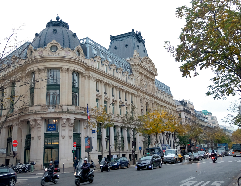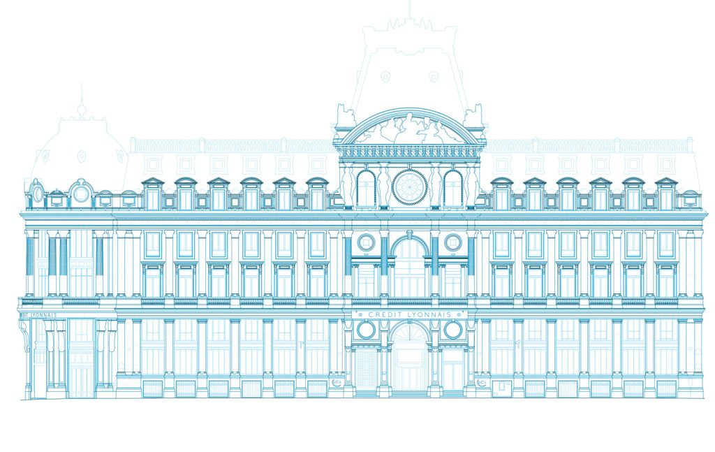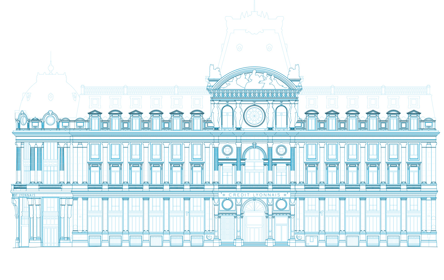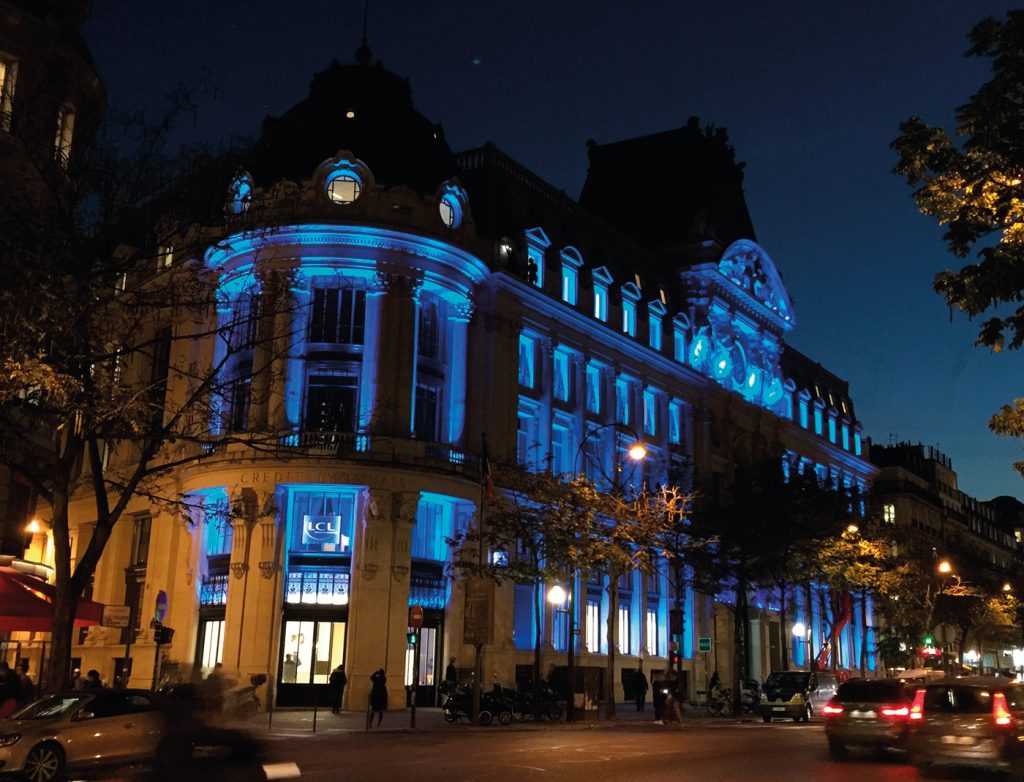 Le projet consiste en une mise en lumière des façades du siège historique du Crédit Lyonnais dans le cadre de l’implantation d’activités et animations pour dynamiser le bâtiment construit en 1876. L’ensemble est réalisé selon un souci de mise en valeur du patrimoine par le biais d’une scénographie réfléchie, développée grâce à l’éclairage.