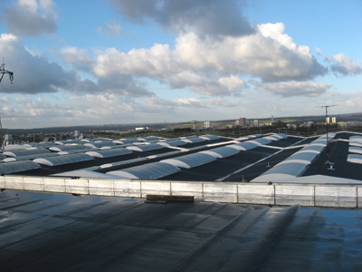Aménagement extérieur et réhabilitation du bâtiment en milieu occupé : •rénovation de l’ensemble de la toiture et création de voûtes lumineuses •modernisation des façades pour une image plus moderne •création d’une passerelle extérieure pour l’accès des véhicules aux ateliers